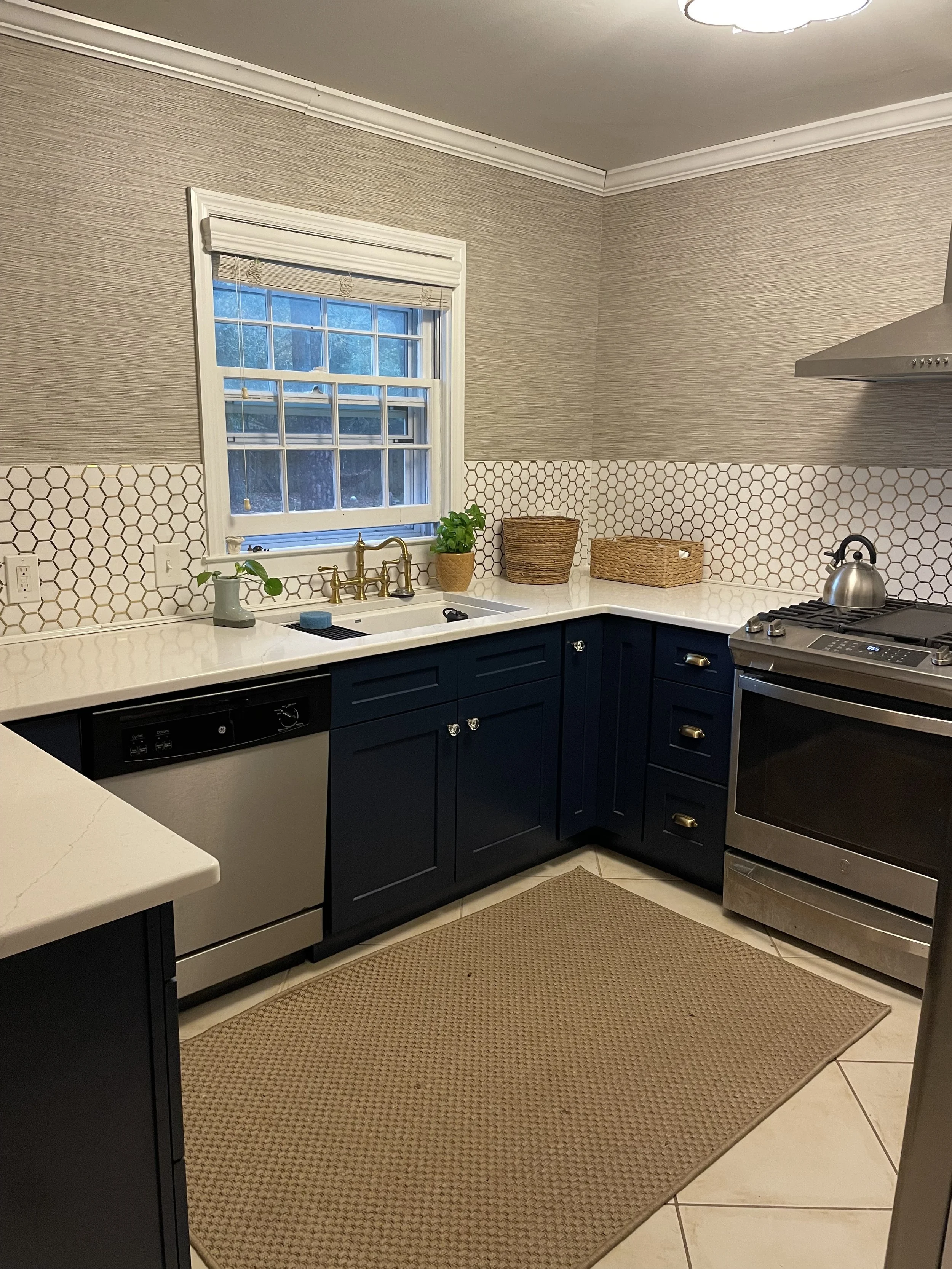 RTA cabinet construction, assembly, wallpaper, faucets, fixtures, appliance install
